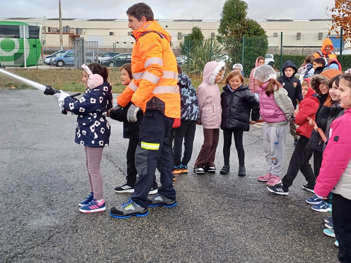 Además de participar en las actividades del parque, hemos tenido la suerte de recibir la visita de los bomberos del parque cercano. Nos han mostrado su camión, explicado cómo funcionan algunos de sus equipos y, para alegría de todos, ¡nos han dejado usar la manguera como auténticos bomberos y bomberas!